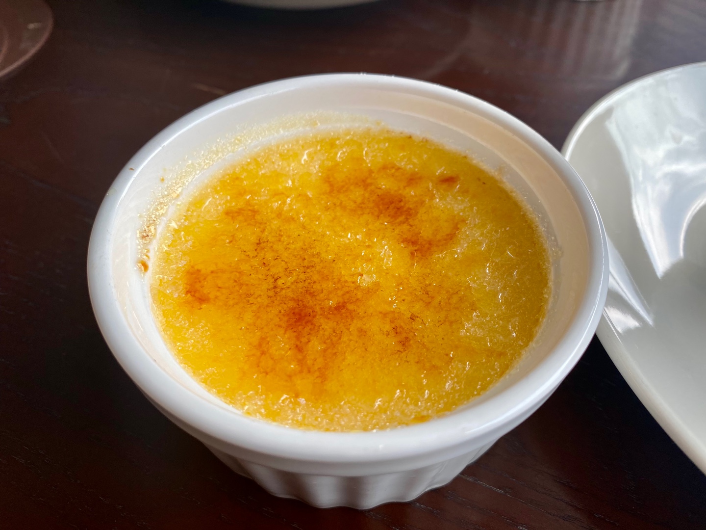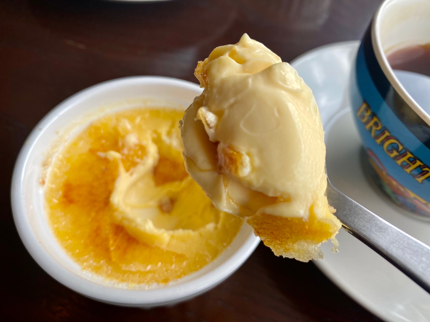 대표 메뉴는 수제청과 크림브뤨레 그리고 리얼 딸기 우유와 딸기 오믈렛 등이 있다. 계절과 상황에 따라 변화가 있는 듯 하다. 찾아간 2월 오늘의 추천 주스는 리얼딸기우유, 골드키위 주스,토마토 주스였다. 대표 커피 메뉴는 에스프레소 4,000원, 아메리카노 4,500원, 더치커피 디카페인이 5,000원이다. 우리는 아메리카노(4,500)와 크림 브렐레(4,000)를 주문했다. 바로 이 크림 브륄레를 안 먹었으면 정말 후회할 뻔했다. 브륄레는 ‘타다(burm)’라는 프랑스어 동사 브뤨레르에서 파생된 단어로, 크림 브륄레는 말 그대로 ‘불에 탄 크림’ 이라는 뜻이다. 단어 표현처럼 바로 크림을 불에 태우는 건 아니고 크림 커스터드 위에 설탕을 뿌리고 조리용 토치로 설탕을 불에 그을려 캐러멜 코팅을 만드는 조리법이다. 설탕이 녹으면서 액체화되고 그 상태로 굳히면 딱딱한 막이 생기는데, 이 막을 깨어 아래 크림과 함께 먹으면 된다. 캐러멜이 차갑게 다가오고 파삭한 식감과 함께 부드럽고 달달하면서 살짝 쓴맛도 함께 들어온다. 우리나라 영화 ‘리틀 포레스트’에도 등장한 디저트인데 혜원 역의 김태리가 친구 은숙(진기주)에게 사과의 표현으로 만들어준다. 극중에서 기주가 이 브뤨레를 먹고 깜짝 놀라는 표정을 보이는데 우리의 표정도 딱 그러했다. 이 맛있는 디저트를 먹고 마음이 풀리지 않을 수 없을 것 같다. 따뜻한 아메리카노와 더할 나위 없이 궁합이 좋아 우리는 아메리카노 한잔 더 마셨다. 보통은 투박한 머그잔에 담기는 아메리카노를 이렇게 예쁜 잔에 담아 먹으니 일하러 온 전주지만 대접 받으면 제대로 쉼표를 찍고 간다.